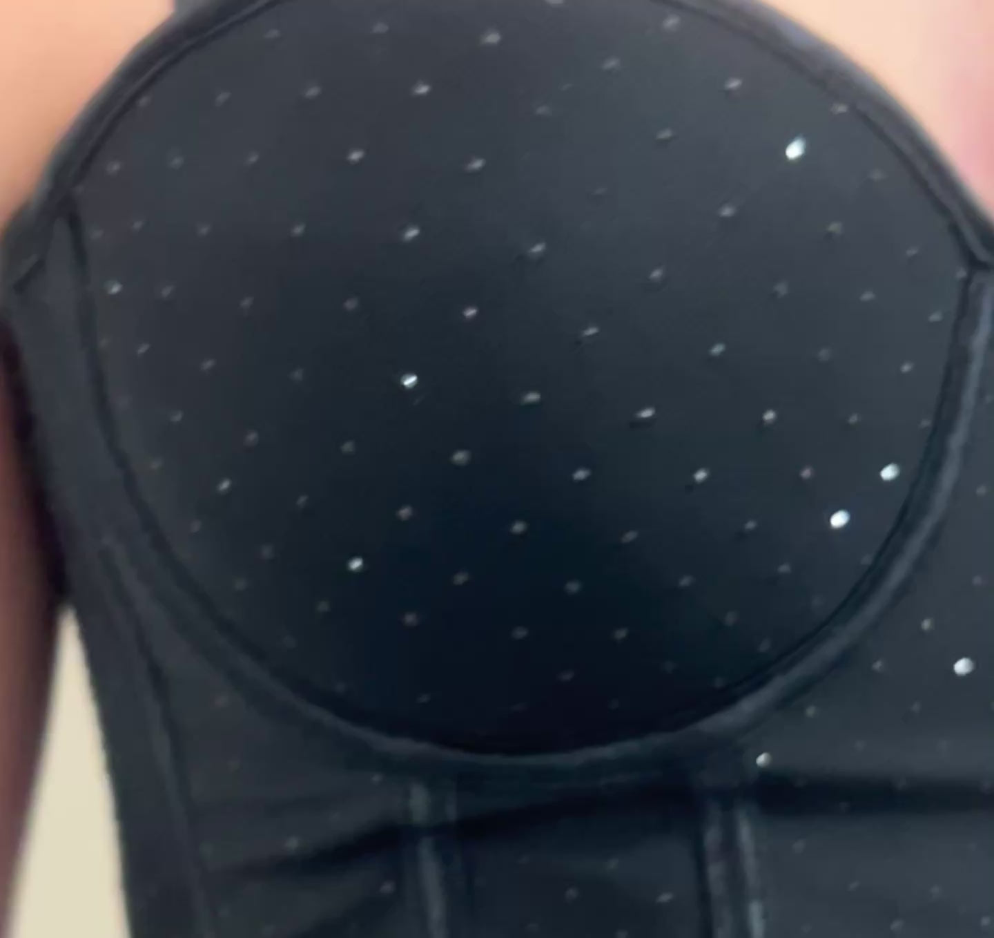 Corpetto Ily con diamantini neri effetto luccicante. Modello bustier, con coppe preformate che valorizzano e sostengono il décolleté.